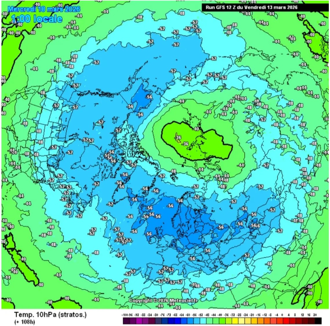 Αυτή τη στιγμή, όλα δείχνουν προς μια Τελική Θέρμανση : μετά τη διάσπαση του Φεβρουαρίου , στην πραγματικότητα, η πολική δίνη συνέχισε να εμφανίζει απίστευτα δυναμική συμπεριφορά , με συνεχείς φάσεις διασπάσεων και μερικών επανασυμπυκνώσεων , που ευνοούνται από μάλλον ενεργά πλανητικά κύματα . Αλλά με την άφιξη του Μαρτίου , ο ήλιος και η ακτινοβολούμενη θέρμανση καθιστούν τη ζωή ολοένα και πιο περίπλοκη για την Πολική Δίνη : κάθε νέος παλμός των κυμάτων Rossby τείνει επομένως να την καταστρέφει περαιτέρω .