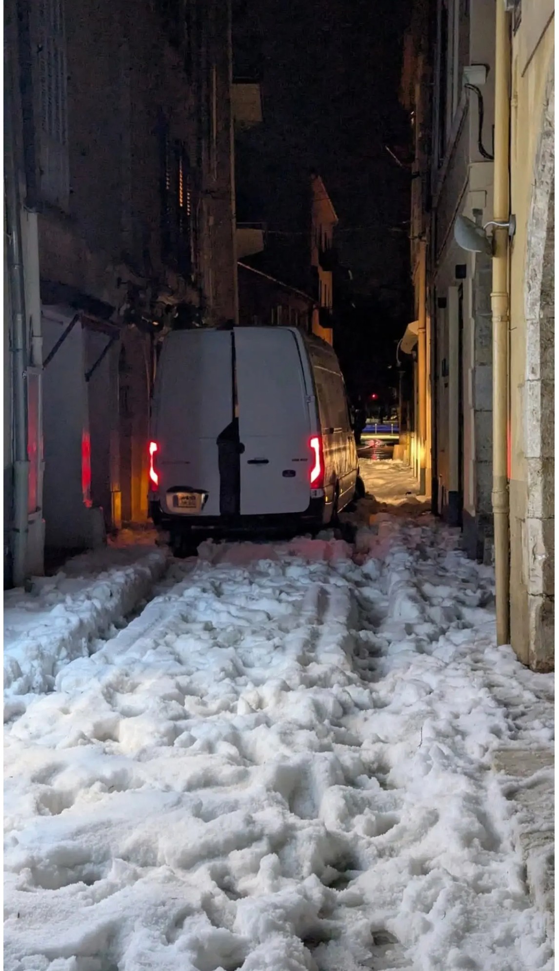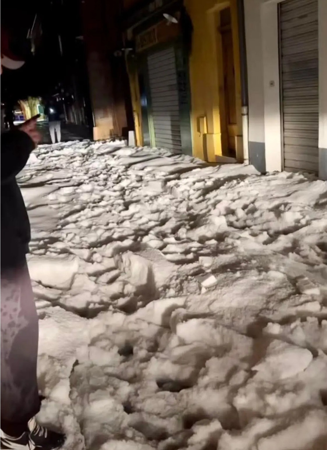 Σε ορισμένους δρόμους στο κέντρο, όπως στην καρδιά της παλιάς Αντίμπ, το στρώμα χαλαζιού έφτασε σε πάχος αρκετών εκατοστών , με ακόμη μεγαλύτερες συσσωρεύσεις σε υποβαθμισμένες περιοχές, δημιουργώντας ένα συμπαγές και ολισθηρό λευκό στρώμα.
