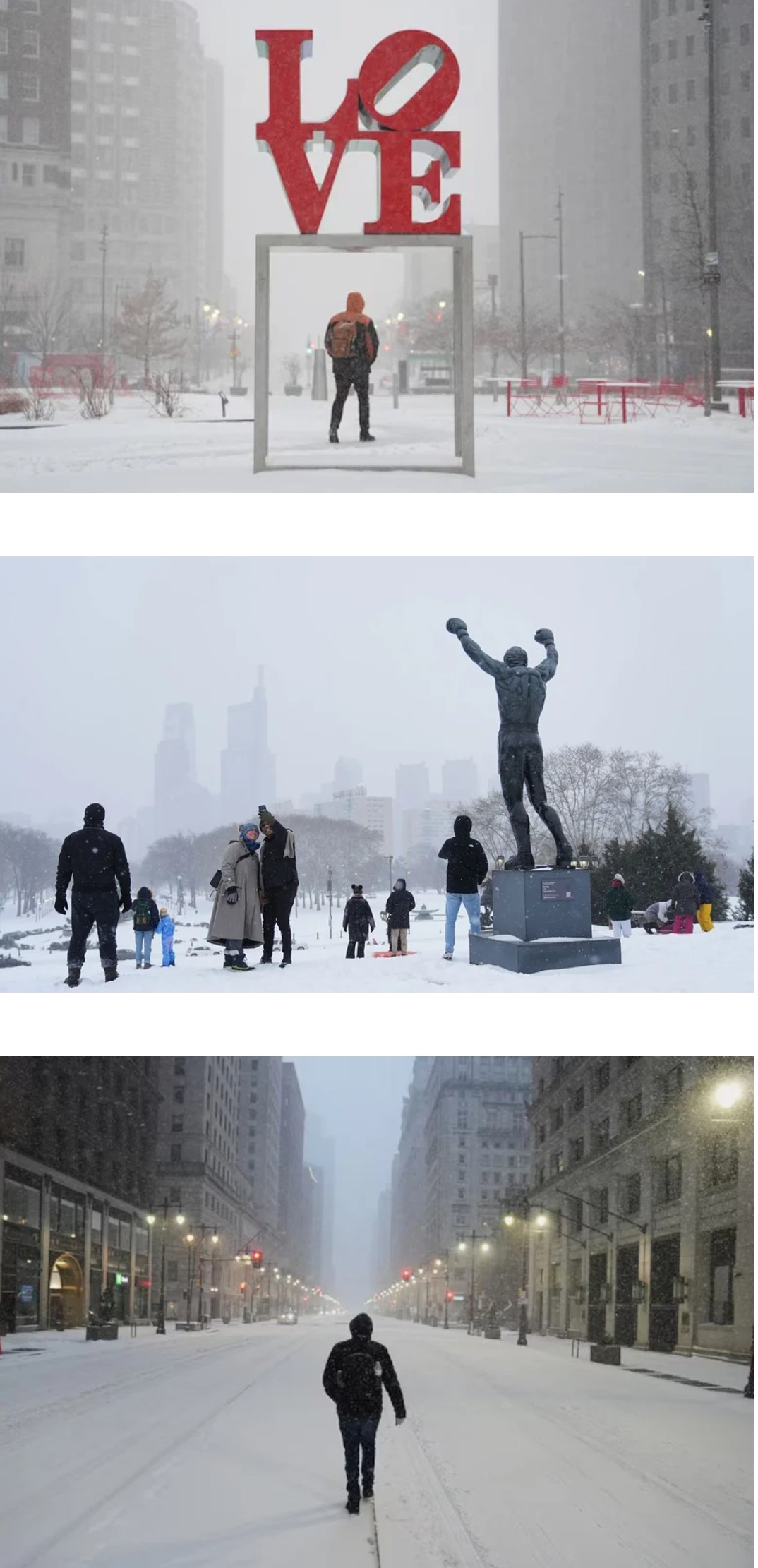 Η καταιγίδα κινείτο προς τα βορειοανατολικά, με σφοδρές χιονοπτώσεις σε μεγάλες πόλεις όπως η Φιλαδέλφεια, η Νέα Υόρκη και η Βοστώνη.