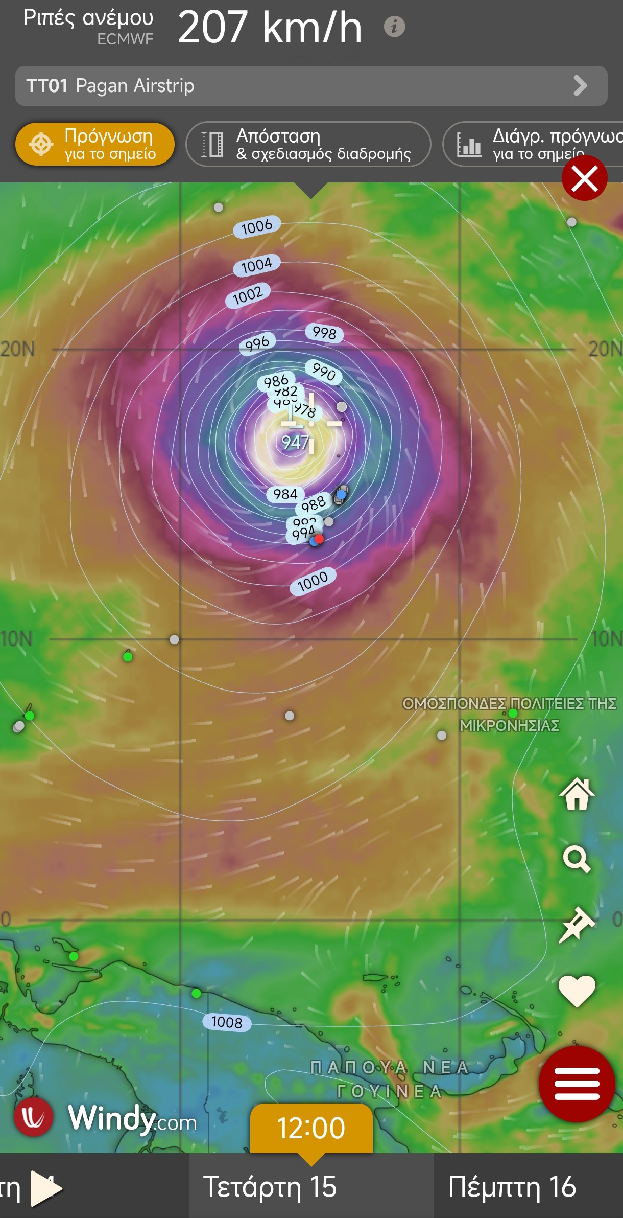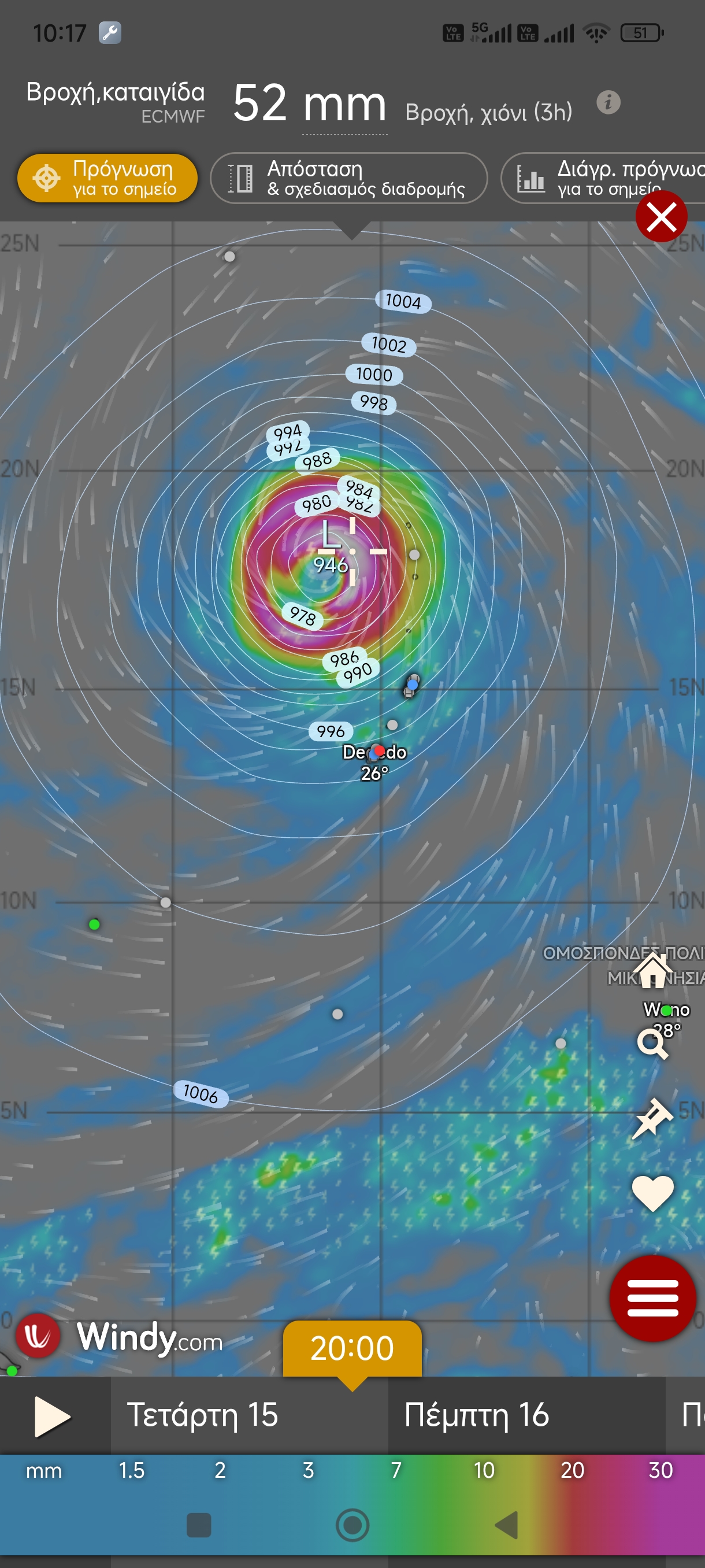 Η περιοχή αυτή αναμένεται να βιώσει ισχυρούς ανέμους άνω των 200χλμ/ώρα με καταστροφικές συνέπειες, έντονες βροχοπτώσεις με ισχυρές καταιγίδες και επικίνδυνη θαλασσοταραχή με κύματα που θα ξεπερνούν ακόμη και τα 10 μέτρα.