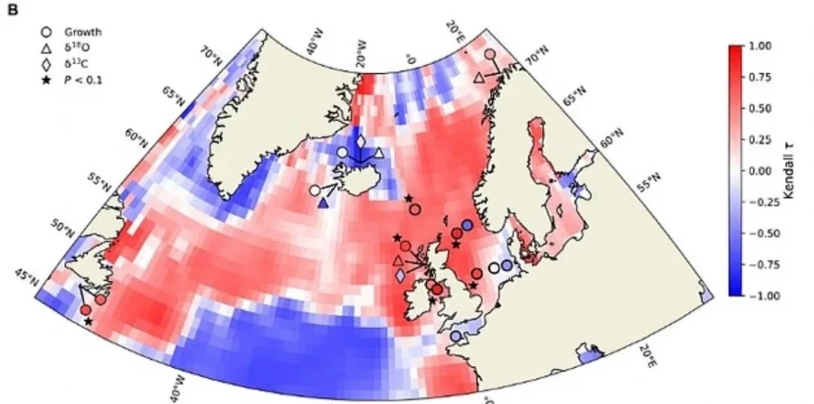 Για τη μελέτη, οι επιστήμονες ανέλυσαν όστρακα από είδη αχιβάδων του Βόρειου Ατλαντικού, όπως η ocean quahog και η dog cockle, τα οποία ζουν για αιώνες και καταγράφουν στο κέλυφός τους τις περιβαλλοντικές συνθήκες κάθε έτους – αντίστοιχα με τους ετήσιους δακτυλίους στα δέντρα. Τα ισότοπα οξυγόνου και άνθρακα στα κελύφη αποκάλυψαν δύο περιόδους «αποσταθεροποίησης» του ρεύματος τα τελευταία 150 χρόνια: μία πριν από το 1920 και μία ισχυρότερη που ξεκίνησε γύρω στο 1950 και συνεχίζεται έως σήμερα.