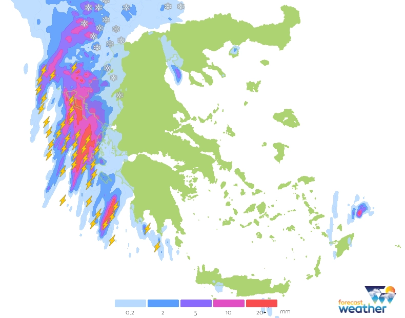 Ιόνιο: Λίγες τοπικές μπόρες κατά τη διάρκεια της ημέρας, κυρίως στα βόρεια. Τη νύχτα αναμένεται επιδείνωση με βροχές και καταιγίδες.