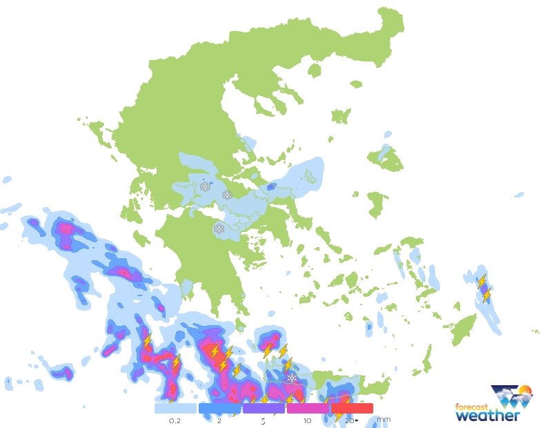 🌦️ Βροχοπτώσεις στη κεντρονότια Ελλάδα το Σάββατο 20-12-25