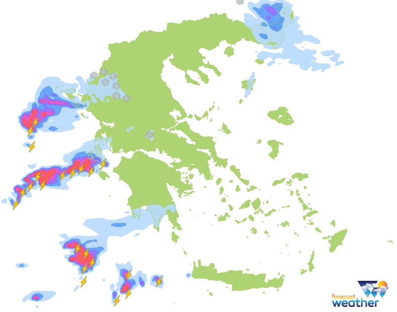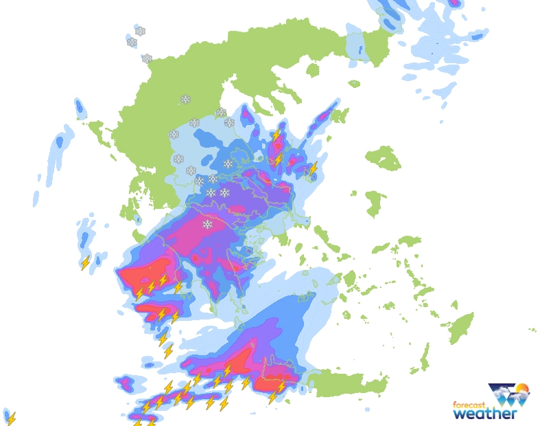 Μπαίνοντας στην επόμενη εβδομάδα, το σκηνικό του καιρού θα αλλάξει με βροχές και σποραδικές καταιγίδες αρχικά στο Ιόνιο και τα Κεντρο-Δυτικά ηπειρωτικά τμήματα και από το βράδυ στα Ανατολικά-Βορειοανατολικά τμήματα, καθώς οι πρώτες αξιόλογες χιονοπτώσεις θα σημειώθούν στα βουνά της Κεντρικής και Βορειοδυτικής χώρας περίπου πάνω από τα 1.700 με 1.900 μέτρα. Από την Τρίτη τα φαινόμενα θα ενταθούν κυριώς στα Δυτικά και Νότια, καθώς θα επεκταθούν και στην υπόλοιπη χώρα με τις χιονοπτώσεις να εκδηλώνονται και στα βουνά της Βόρειας Πελοποννήσου, ενώ οι άνεμοι θα στραφούν σταδιακά σε Νοτιάδες, οι οποίοι από την Τετάρτη σε συνδυασμό με την υγρασία και τη σκόνη θα προκαλέσουν λασποβροχές ανεβάζοντας και τη θερμοκρασία.
