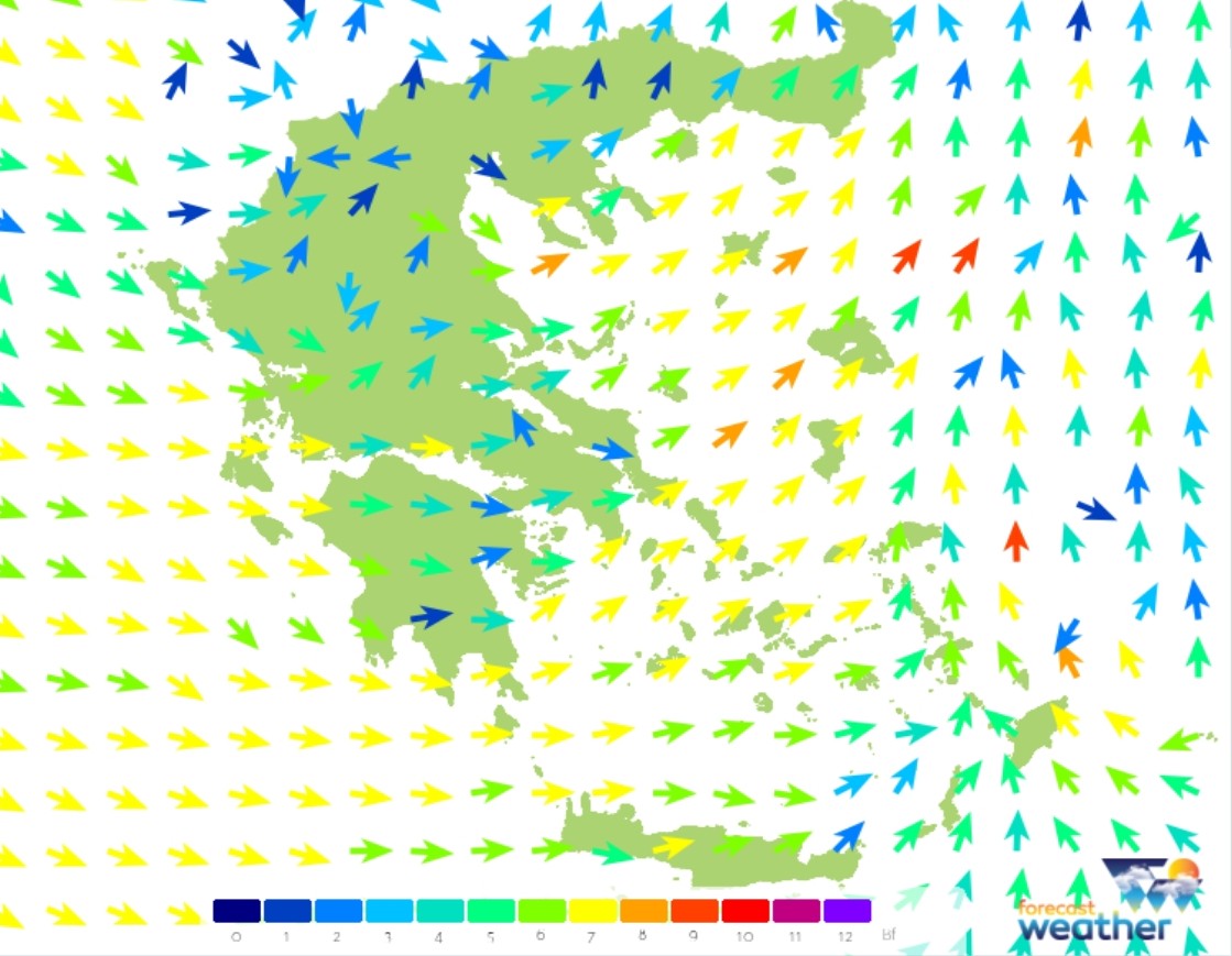Οι άνεμοι στα Πελάγη θα πνέουν θυελλώδεις με εκτεταμένες εντάσεις της τάξεως των 9-10 μποφόρ σε επίπεδο ριπών, γεγονός που ενδέχεται να προκαλέσει προβλήματα κατά τόπους, όπως και σε δυτικά παράκτια τμήματα της χώρας.