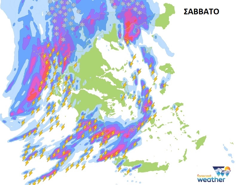 Άστατος ο καιρός σε όλη τη χώρα με ισχυρές βροχές και σποραδικές καταιγίδες που θα είναι κατά τόπους πιο έντονες στα νησιά του Ιονίου, τη Στερεά Ελλάδα, τη Δυτική και Νότια Πελοπόννησο, τη Δυτική Κρήτη, τα Δωδεκάνησα, το Βόρειο Αιγαίο με τη Χαλκιδική και από αργά τη νύχτα στη Θεσσαλία. Στις υπόλοιπες περιοχές ναι μεν τα φαινόμενα θε είναι λιγότερο έντονα, αλλά αναμένεται να ρίξει αρκετή ποσότητα νερού κυρίως στα ενδότερα ηπειρωτικά εκτός από την Ανατολική Πελοπόννησο και τα Κεντροβόρεια και Ανατολικά τμήματα της Κρήτης που εκεί περιμένουμε τοπικά ασθενείς βροχές μικρής διάρκειας. Επίσης πυκνές χιονοπτώσεις θα σημειωθούν αρχικά στα ΒΔ ηπειρωτικά περίπου από τα 1000-1200, ενώ θα χιονίσει επίσης μέσα σε Φλώρινα και Πτολεμαίδα.