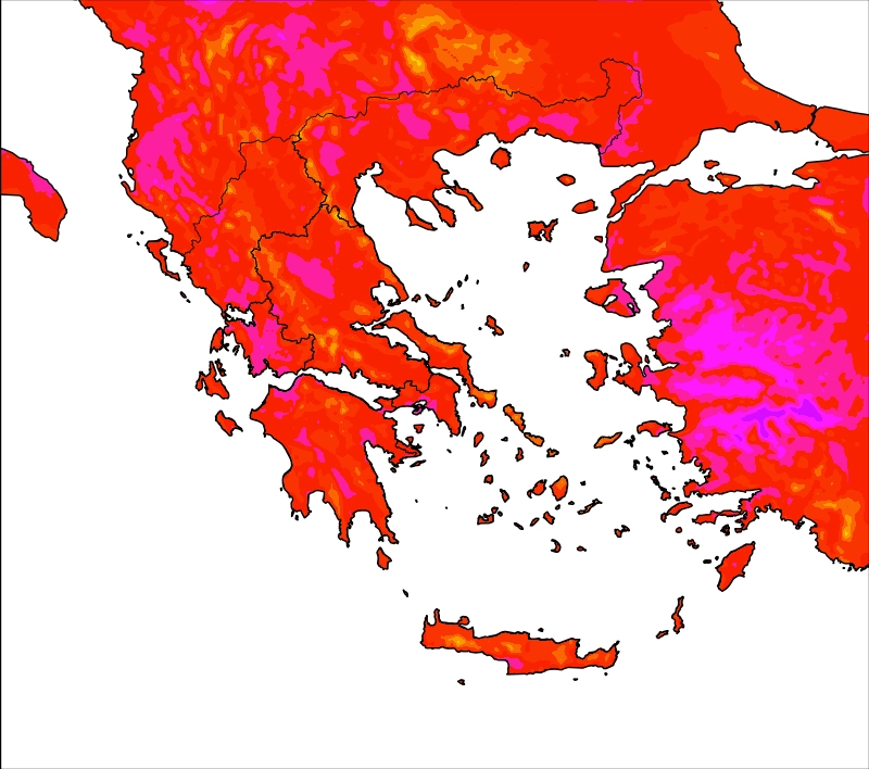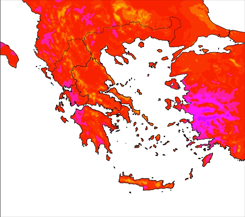 Η θερμοκρασία, χωρίς αξιόλογη μεταβολή, στα Δυτικά και Κεντρικά θα αγγίξει τους 32-34°C, ενώ στα υπόλοιπα ηπειρωτικά θα φτάσει τους 28-30 και τοπικά στη Θράκη και τα ΝΑ και Νότια τμήματα τους 32-33 βαθμούς. Στα νησιά του Ιονίου η μέγιστη θα φτάσει τους 28-30 και τοπικά τους 32°C, ενώ στου Αιγαίου λόγω του μελτεμιού δε θα ξεπεράσει τους 25-27°C, με εξαίρεση του Αν. Αιγαίου, τα Δωδεκάνησα και τη Νότια Κρήτη που εκεί θα ανέβει στους 31-33 βαθμούς.