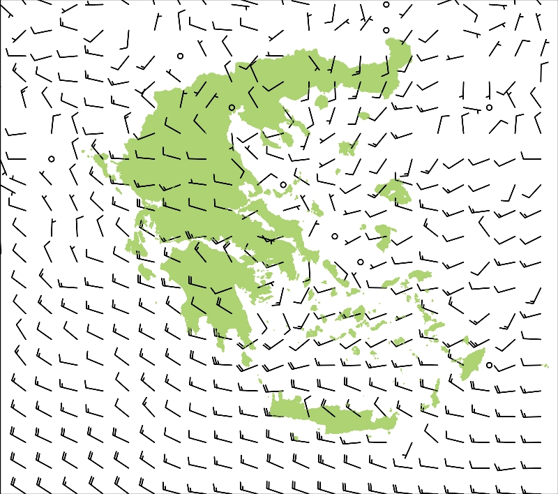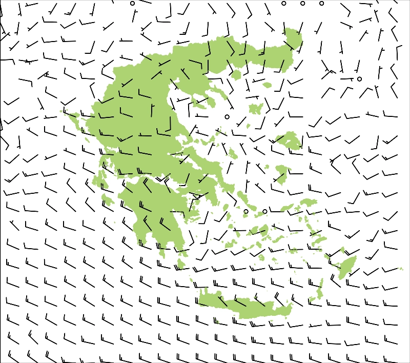 Οι άνεμοι στο Νότιο Αιγαίο θα πνέουν Δυτικοί 6-7 Μποφόρ και στο υπόλοιπο ΒΔ ασθενείς, ενώ στο Ιόνιο επίσης ΒΔ θα πνέουν 5-6 Μποφόρ.